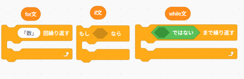 for文と同じように、「くりかえし処理」ができる文。違いは、while文は「条件を満たす限りずっと繰り返す」→if文に近い